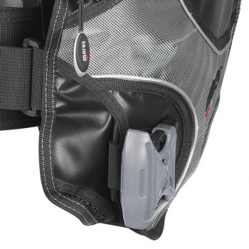À l'intérieur de la poche droite se trouve une boucle élastique pour fixer les petits accessoires. Les poches ont des ouvertures spéciales pour l'octopus et le manomètre ou la console.