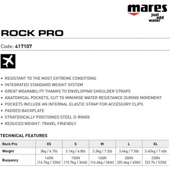 Parmi les gilets stabilisateurs avec lest standard intégré produits par Mares, le Rock Pro est certainement parmi les plus durables et s'adapte à différents types de plongée.